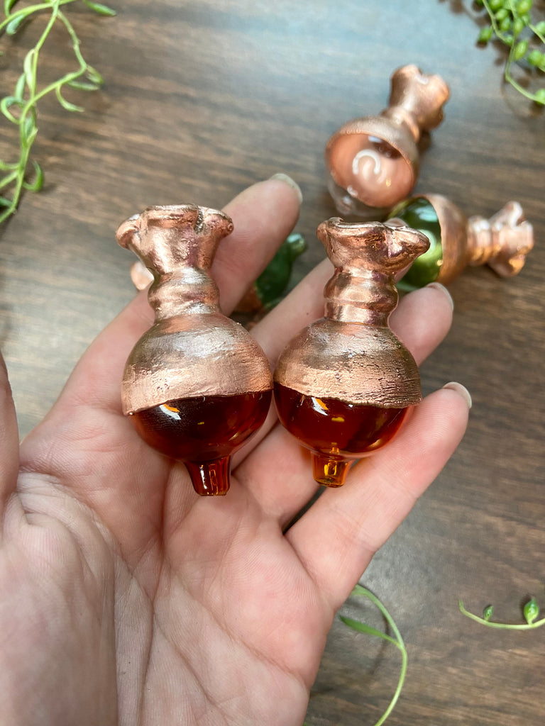 Sweet simple and affordable carb caps electro formed in copper. Two available in each color, be sure to select the color you want!