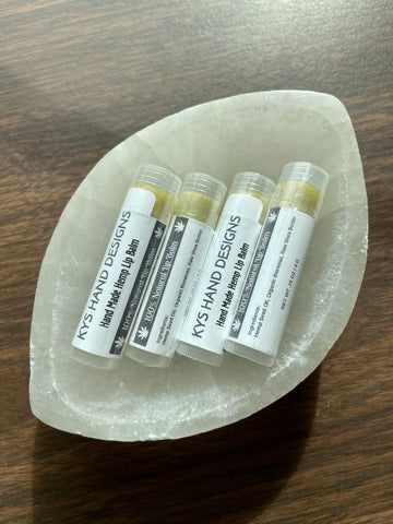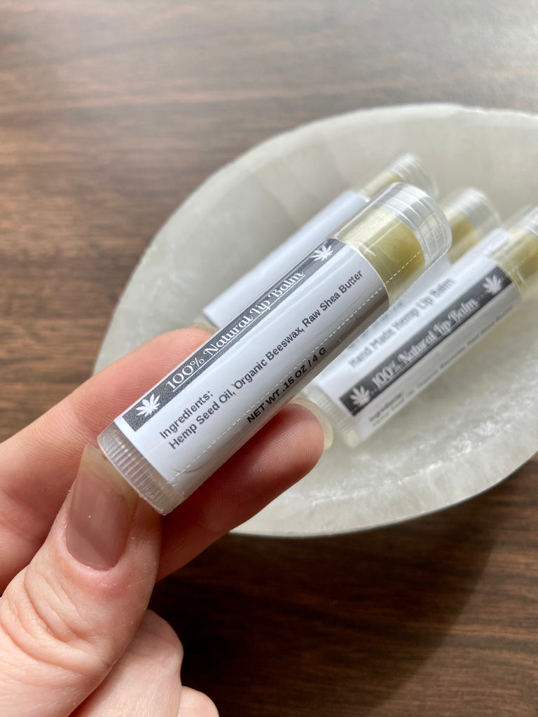 Handmade lip balm with just THREE easy to pronounce ingredients; hemp oil, beeswax & organic shea butter. No scent or flavoring is added so it has a slight hemp flavor. Double safety seal for your protection.