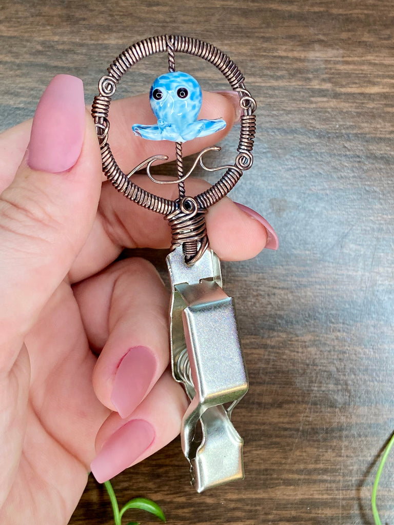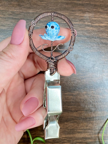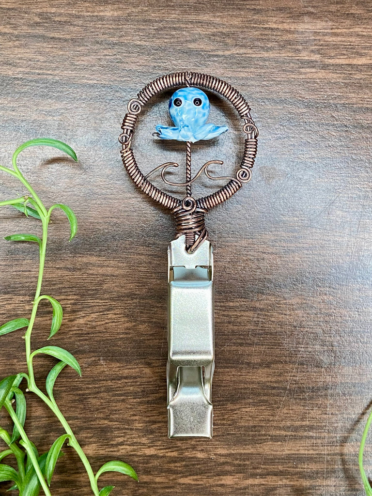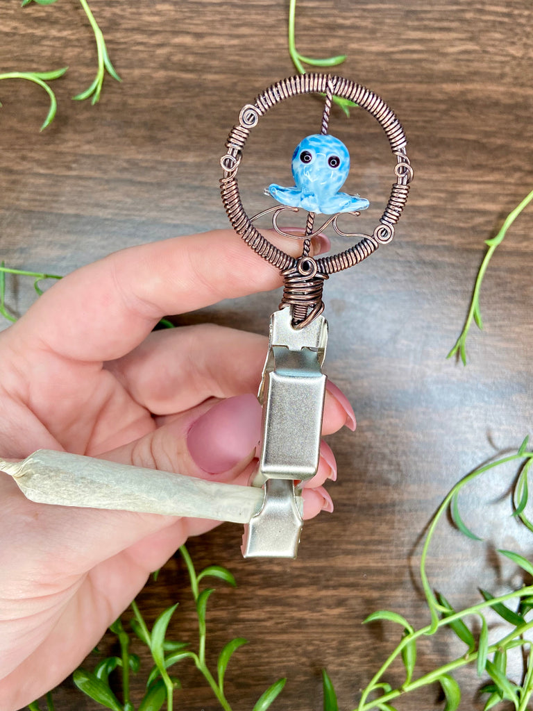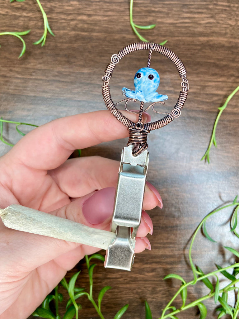 Copper wire wrapped roach clip with an octopus swimming in the waves π π