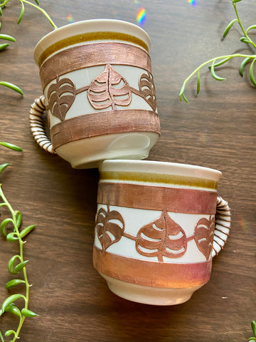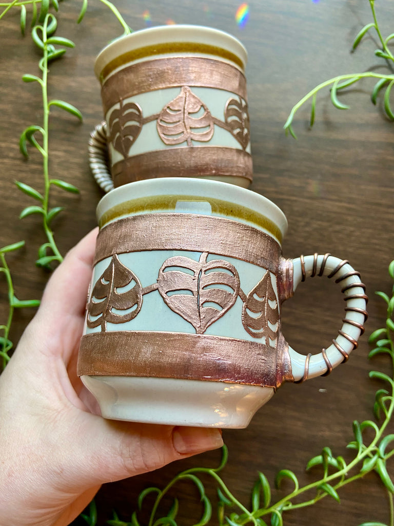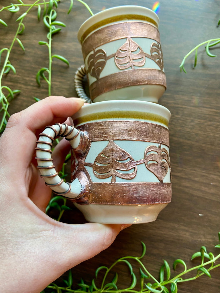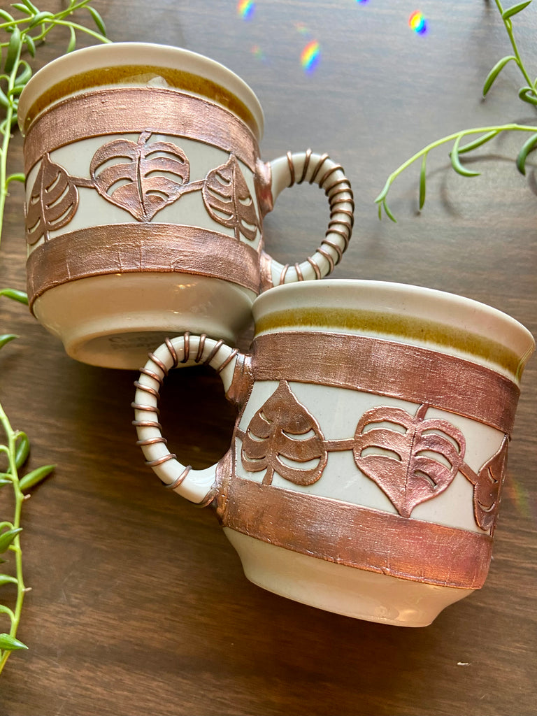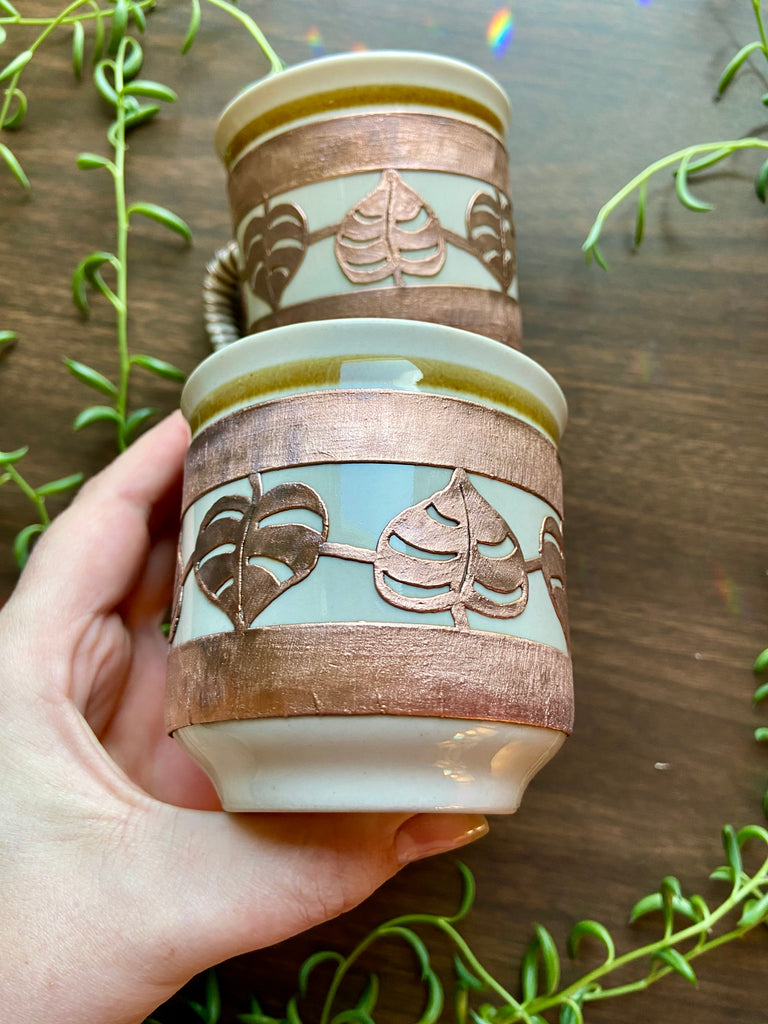 Copper electro formed monstera inspired 8oz coffee cups! Comes in a set of two.