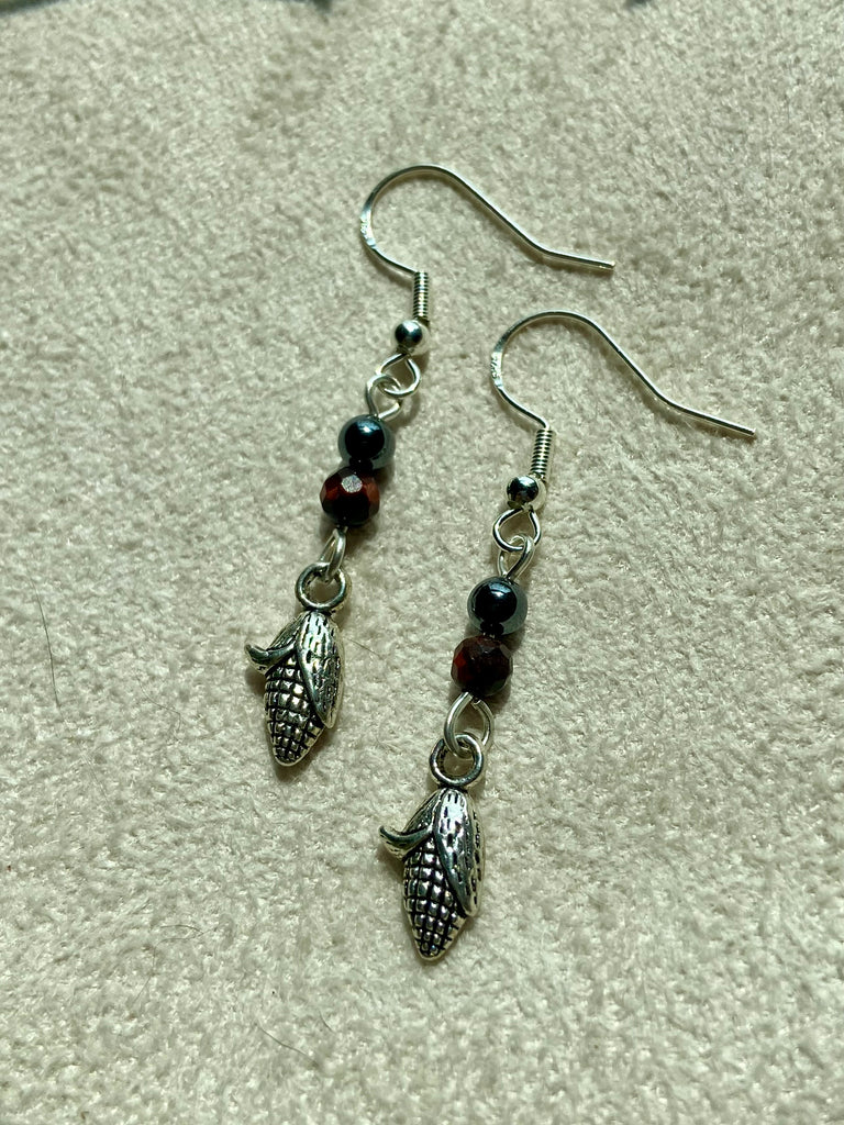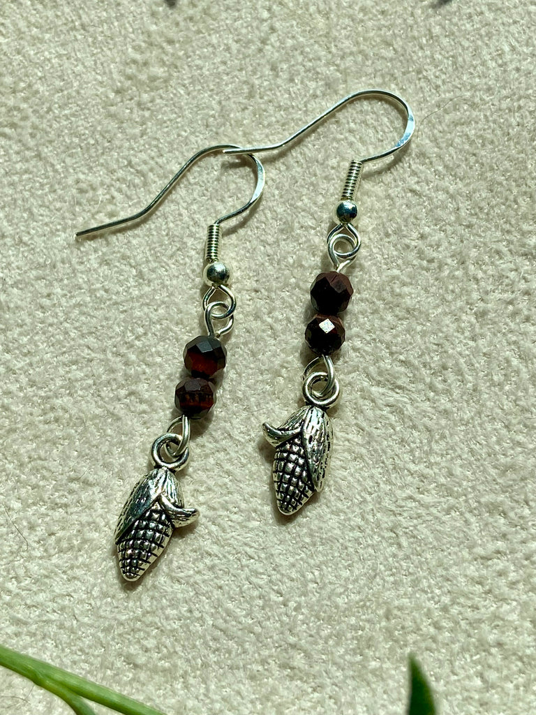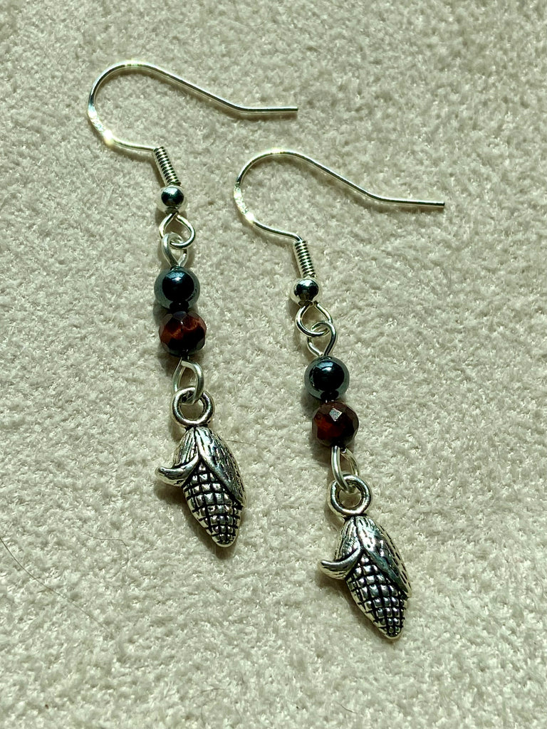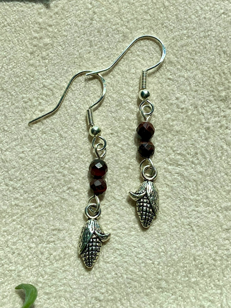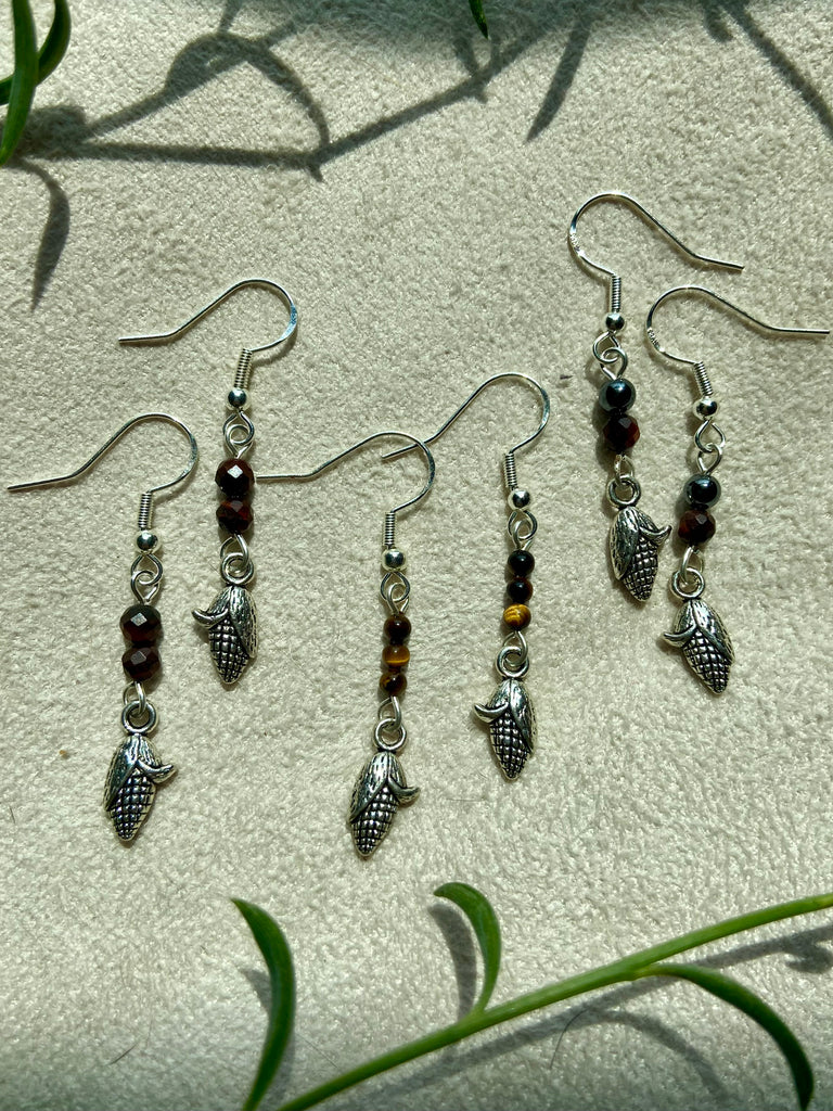 Sterling silver corn earrings with different crystal addition variations.