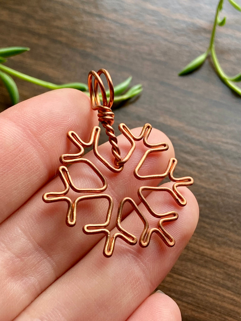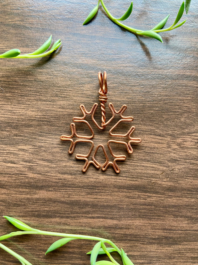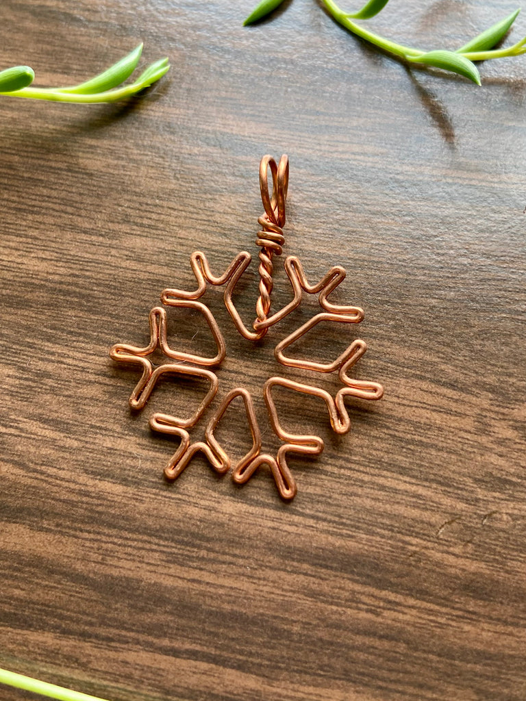 Super simple yet stunning, medium copper wire wrapped snowflake pendant.
